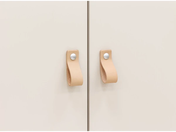 De kast heeft een vaste legplank, een in hoogte verstelbare legplank, en een hangroede. De deuren zijn verfraaid met verfijnde leren lussen als handgrepen, waardoor functionaliteit en esthetiek naadloos samenkomen. Combineer de kast met de rest van de Lines collectie om zo een mooi geheel te creëren.