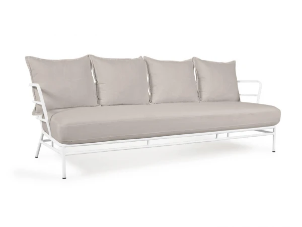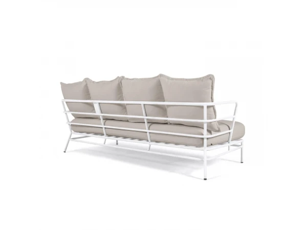 Deze 3-zitsbank heeft een gegalvaniseerde stalen structuur met mat zwarte of witte lak en afneembare kussens. Mareluz is een exclusieve designcollectie die door Petra Lassenius speciaal voor Kave Home is bedacht en gecreëerd. Het is een zorgeloze loungebank: het staal is niet alleen volledig gemonteerd, maar ook bestand tegen roest en corrosie. Maak de look compleet met de bijpassende Mareluz-fauteuil: geniet van buitengewoon comfort.