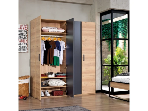 Een kledingkast kan natuurlijk nooit ontbreken in een tienerkamer. Met deze Irony draaideurkast hebben we de perfecte oplossing voorzien van alle gemak. De kast is uitgevoerd in een blank eiken kleuren metalen handgrepen voor een iets stoerdere look. Ze bevat een grote spiegeldeur in het midden. Praktisch gezien is de kast voorzien van legplanken en een grote hangroede. Onderdeel van de Irony collectie die je kan terugvinden op de webshop of in de winkel.