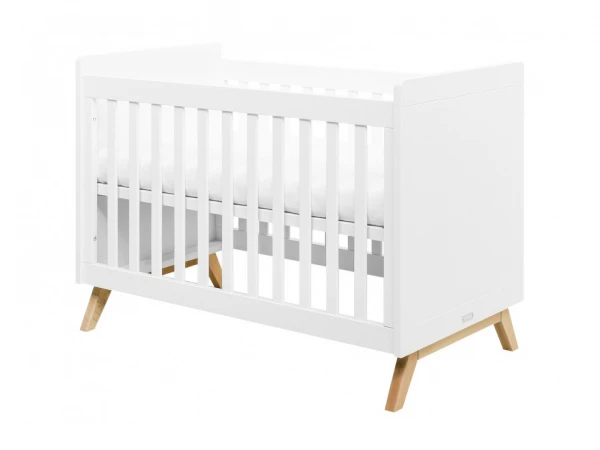 Fenna is een moderne baby- en kinderkamer. De combinatie van gelakt wit hout met naturel beukenhouten pootjes zorgt voor een eigentijdse en Scandinavische look. Dit babybed komt inclusief verstelbare bedbodem. Van zodra de baby zich kan optrekken, kun je de bodem verlagen voor extra veiligheid. Combineer dit bed met de andere meubels van de collectie Fenna voor een mooie uniforme slaapkamer.