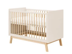 De zijrekken van het bed zijn voorzien van stevige, ronde beuken spijlen. Babybed Lines is niet alleen zeer veilig, maar ook zeer praktisch! Zo kan je de bedbodem op twee verschillende hoogtes instellen. Combineer het bed met de rest van de Lines collectie om zo een mooi geheel te creëren.