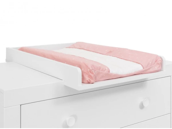 Dit opzetstuk is geschikt voor onder andere commode Fenna. Een barrier of opzetstuk zorgt ervoor dat je baby recht voor je ligt, wat het verschonen en aankleden een stuk gemakkelijker maakt. Op het opzetstuk kun je een aankleedkussen plaatsen, dat niet kan verschuiven door de opstaande randen. Het opzetstuk wordt vastgemaakt aan de commode en kan later weer verwijderd worden als het kindje groot is. Het opzetstuk steekt aan de voor- en achterkant van de commode iets uit, hierdoor komt de commode circa 10-15 cm van de muur af te staan.