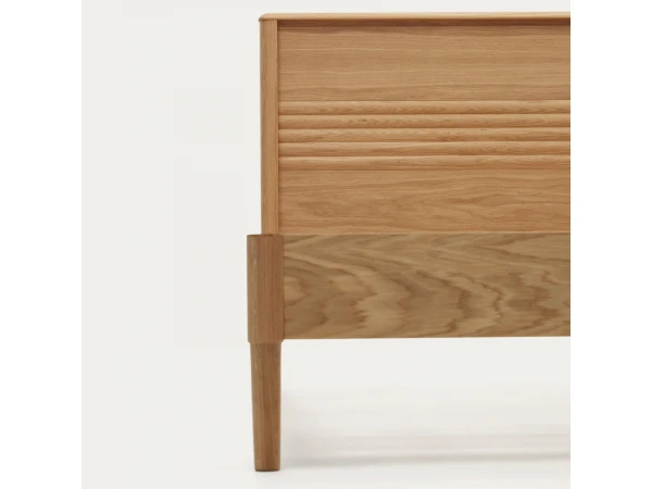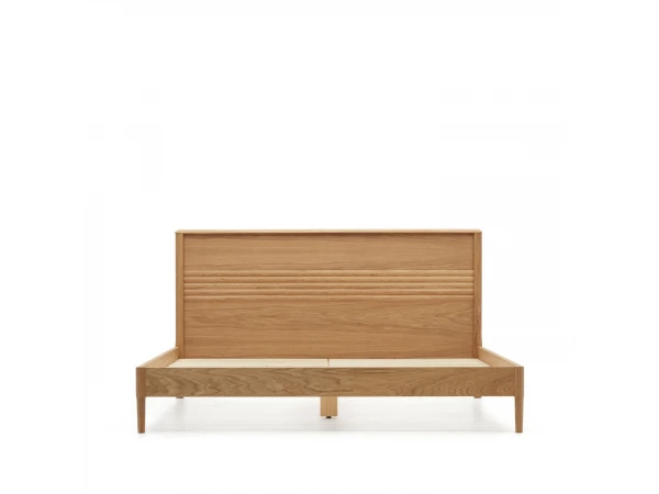 Ontspan en rust uit in stijl met het prachtige bed Lenon van Kave Home. Het meubel is gemaakt van massief hout en eikenfineer en voegt meteen een natuurlijke en warme sfeer toe aan je slaapkamer. Het ontwerp heeft afgeronde randen en reliëf en heeft bovendien een tijdloze look die past bij vele interieurstijlen. Misschien ook bij die van jou? Beschikbaar in drie formaten.
