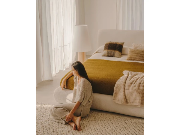 Ontdek het ultieme comfort met het Martina bed van Kave Home! Dit ruime bed is perfect voor een matras van 180 x 200 cm en is bekleed met een luxueuze stof met schapenvachteffect voor een zachte en warme uitstraling. De afneembare hoes is gemakkelijk te reinigen, en de stof is gemaakt van 100% gerecycled polyester, wat overeenkomt met minstens 32 gerecyclede flessen van 500 ml per meter. Bovendien is het bed voorzien van het Oeko Tex®-certificaat, wat betekent dat het vrij is van schadelijke stoffen. Upgrade je slaapkamer met bed Martina voor duurzaamheid en comfort!
