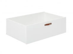 Een functionele bedlade die onder het dagbed kan worden gebruikt, voor extra opbergruimte. De stoere leren handvaten worden meegeleverd, hoe gaaf. Om de ruimte onder het bed op te vullen plaats je 2 van deze lades, daarna ook 1x geleiding voor de lades, art. SCE 4211.