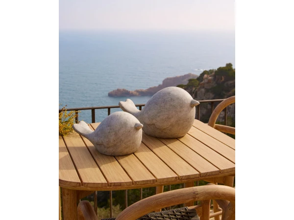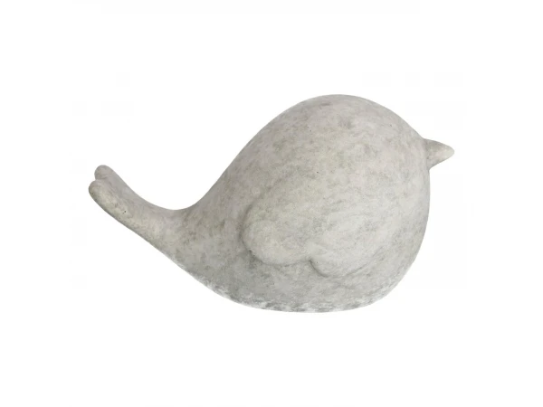 Decoratief beeld Wynne, de grote vogel uit de collectie, met een origineel design gemaakt van cement. Gezien het om een natuurlijk mineraal gaat is elk stuk uniek met eigen kleuren en texturen. Deze decoratieve beelden zijn bestendig tegen water en extreme temperaturen en kunnen dus zonder probleem buiten staan. Samen vormen ze een charmant duo om je tuin of terras op te vrolijken.
