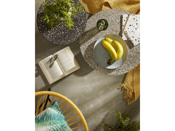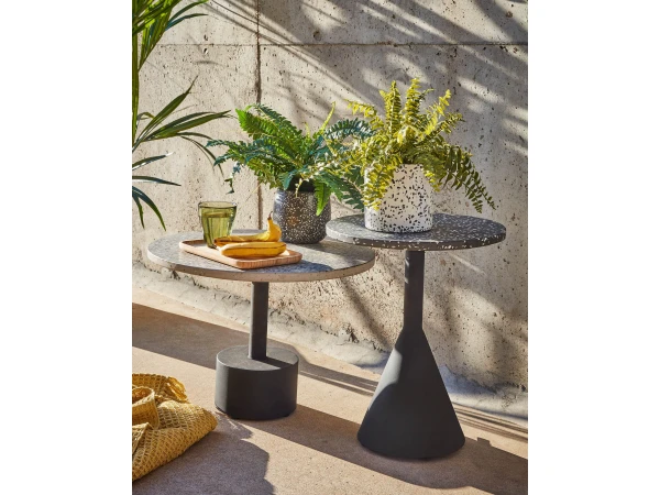 Bijzettafel Delano van Kave Home is een stoere, moderne bijzettafel met een tegelblad en metalen poot. Het tafelblad is gemaakt uit terrazzo, oftewel kleine stukjes tegel die worden samen gegoten tot een prachtig mozaïekpatroon. De metalen poot is mat gezandstraald en geeft de bijzettafel een industriële look. Deze bijzettafel is verkrijgbaar in een smalle en brede variant, leuk om te combineren, maar ook leuk om afzonderlijk te gebruiken.