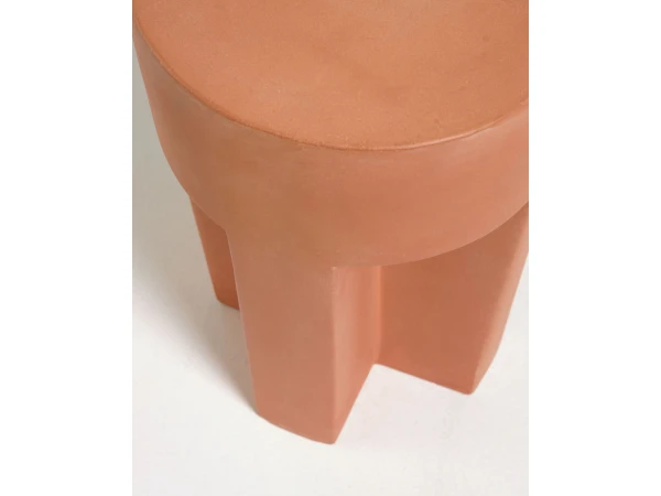 Deze bijzettafel voor buiten is gemaakt van terracotta, een natuurlijk materiaal dat zeer goed bestand is tegen weersinvloeden. Het verdraagt vochtigheid, UV-stralen en extreme temperaturen, en het warmt veel minder op dan metaal. Naast de unieke tinten en texturen is terracotta ook een trendzettende kleur. Creëer een natuurlijke en trendy omgeving in je exterieur dankzij dit minerale materiaal waarvan je het hele jaar door kunt genieten. Dit item is een exclusief ontwerp bedacht en gemaakt door het Kave Home team. Naast deze bijzettafel is er ook een terracotta salontafel voor buiten beschikbaar.