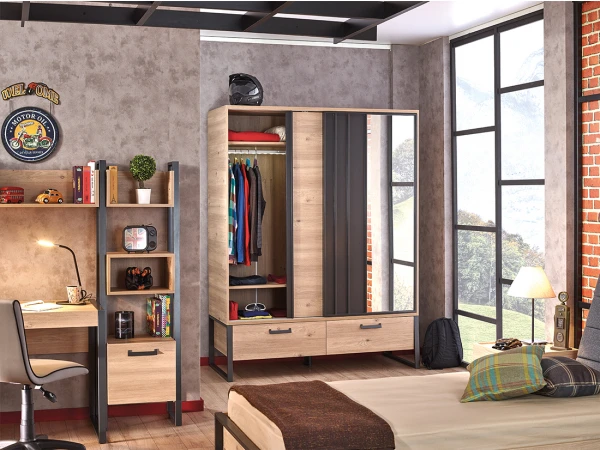 De Irony collectie is de perfect oplossing voor een nieuwe jeugdkamer. De combinatie van hout en metaal zorgen voor een stoere uitstraling.