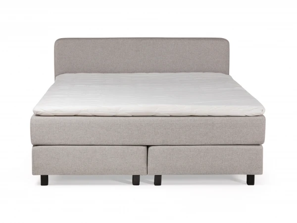Met deze moderne boxspring haal je het totaalplaatje in huis. Het hoofdbord met afgeronde hoeken zorgt voor een moderne toets. De boxspring komt inclusief luxematras met pocketveren in 7 zones voor een optimale ondersteuning en comfort. Daarbovenop vind je een topper voor een zacht ligcomfort en een heerlijke nachtrust. De gestoffeerde matras maakt het plaatje helemaal af. Deze boxspring past met zijn neutrale kleur in elk interieur! Desgewenst is hij ook nog in andere stoffen en kleuren verkrijgbaar, en kun je gaan voor een bijhorend nachtkastje in dezelfde kleur.