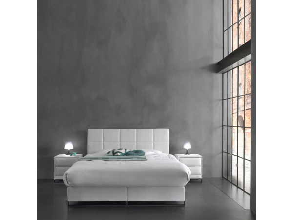 Deze Berlin boxspring van Richter Young Design heeft een prachtige frisse look. De boxspring bestaat uit een 7-zone pocketvering en oogt met metalen poot en lichtgrijze stof zowel rustgevend als modern. Ook is er een bijpassend nachtkastje in dezelfde stof beschikbaar. Een perfect match voor in de slaapkamer! Deze boxspring wordt zonder matras geleverd. Als je op zoek bent naar een goede matras, ben je van harte welkom in onze toonzaal waar onze deskundige medewerkers je graag van advies voorzien bij het kiezen van de juiste matras die bij jouw comfortbehoeften past.