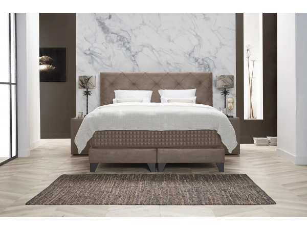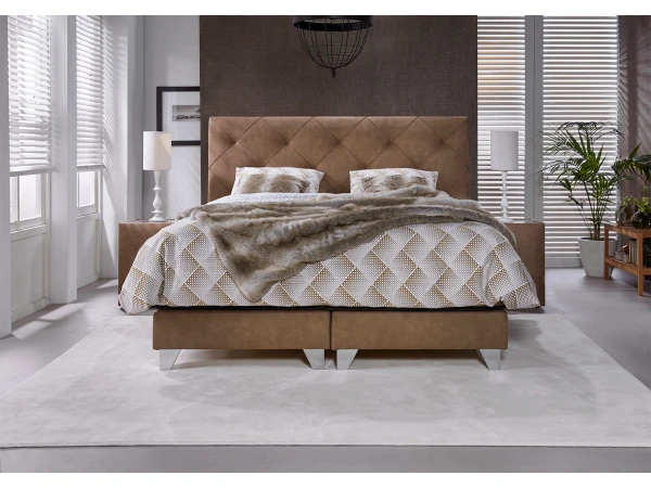 Chique en elegant is de juiste benaming voor de Magnifique boxspring. Door het grotere hoofdbord straalt hij pure luxe uit en vormt hij een lust voor het oog. Deze boxspring steelt de show in elke slaapkamer door de diagonale belijning. In combinatie met de bijbehorende nachtkastjes krijg je een mooi geheel met eigen look and feel. Kortom, met boxspring Magnifique slaap je altijd in stijl. Kies uit 3 tijdloze kleuren leder voor de bekleding, en diverse maten.