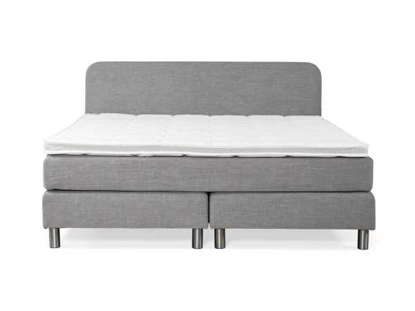 Met deze prachtige boxspring MOOD heb je meteen een complete set in huis. Deze boxspring met hoofdbord Mayfair Flow beschikt over een stevige matras en een zachte topper. De gestoffeerde 7-zone pocketverenmatras heeft een stevig comfort en vormt een mooi uniform geheel met de rest van de boxspring. De topper is vervaardigd uit kwalitatief koudschuim voor een zacht ligcomfort. De ronde pootjes in chroom maken het plaatje compleet. Boxspring MOOD is verkrijgbaar in meerdere groottes en kleuren, ontdek alle mogelijkheden in de toonzaal!