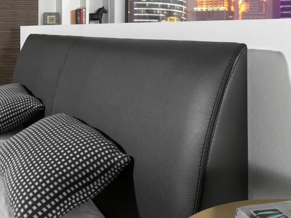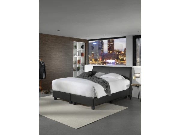 Boxspring Napoli is een stoere, stevige boxspring in lederlook. Het hoofdbord versmalt naar boven toe, wat zorgt voor een moderne look. De zwarte blokpoten werken het geheel mooi af. Deze moderne boxspring is ook nog in andere kleuren te verkrijgen. Kies jouw favoriete kleur uit de stofstalen om jouw ideale boxspring samen te stellen. In de toonzaal wordt deze boxspring gecombineerd met matras Soho, maar in principe kun je deze boxspring met elke matras combineren.