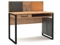 Een stoere, unieke bureau met tal van leuke extraatjes. Deze variant op de bureau Irony beschikt over een stevig bureaublad met daaronder één lade en een open ruimte, zodat je zelf kiest wat je waar opbergt. Daarnaast is het bureau voorzien van een prikbord, usb aansluiting en een opbergtas voor potloden of stiften. Of huiswerk dat “de hond heeft opgegeten”.