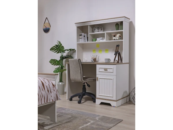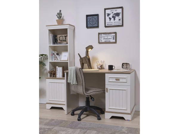 Ben je op zoek naar een landelijke bureau in wit, waar je echt fijn kan studeren en leren? Dan heb ik goed nieuws voor jou! Bureau Monte is de ideale bureau om aan te werken. Deze bureau maakt deel uit van de volledige tienerkamer Monte, die perfect past binnen de landelijke woonstijl. Alle meubels van deze collectie zijn gemaakt van wit gelakt MDF met details in naturel hout. De Monte collectie bestaat uit een breed gamma meubelen om je ideale kinderkamer samen te stellen. Ontdek deze landelijke slaapkamer nu in onze toonzaal!