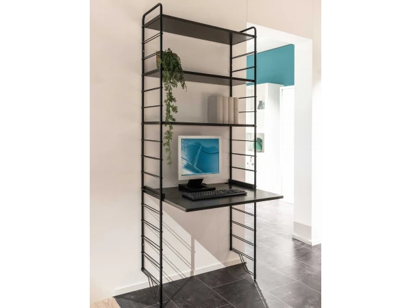 Geef je ruimte een upgrade met bureau Dakota, een prachtige combinatie van tijdloos Scandinavisch design en aanpasbare flexibiliteit. Dit zwarte rek met een handige legplank als bureau is ontworpen om aan jouw behoeften te voldoen, zowel nu als in de toekomst. Met eenvoudige aanpassingen en de mogelijkheid om planken, deuren en lades toe te voegen, biedt Dakota grenzeloze opties. Het is een betrouwbare metgezel die met je meegroeit, perfect voor elke fase van het leven!