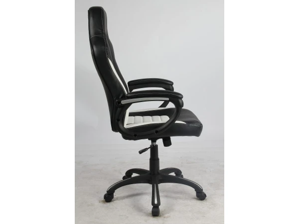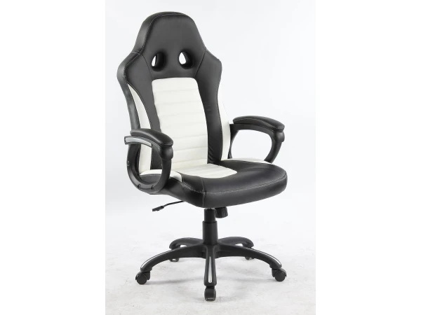 Beleef een aangenaam comfort met bureaustoel Junior van Richter Young Design. Deze moderne stoel is bekleed met zowel zwart als wit kunstleer. De voet met wieltjes zorgt voor moeiteloze mobiliteit, terwijl de verstelbare hoogte en de aanwezigheid van armleuningen een ergonomische ervaring garanderen. Perfect voor zowel werk als gaming of ontspanning. Kom langs in onze showroom en ontdek zelf het comfort.