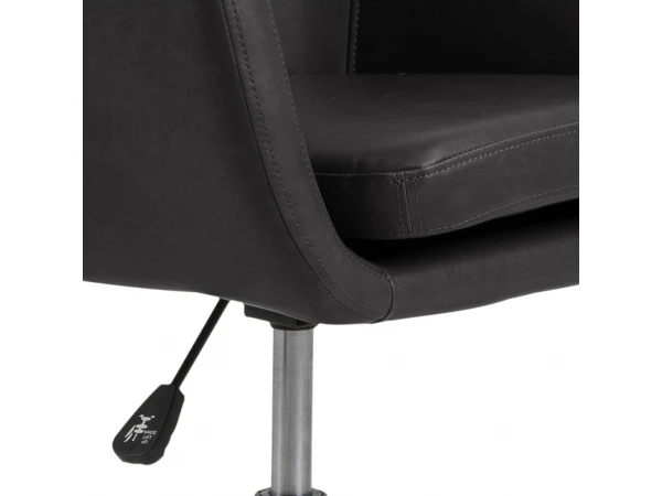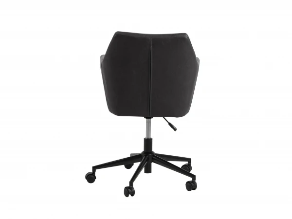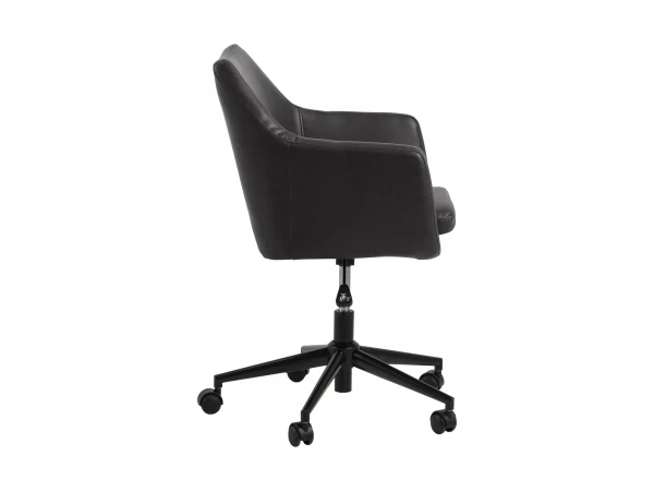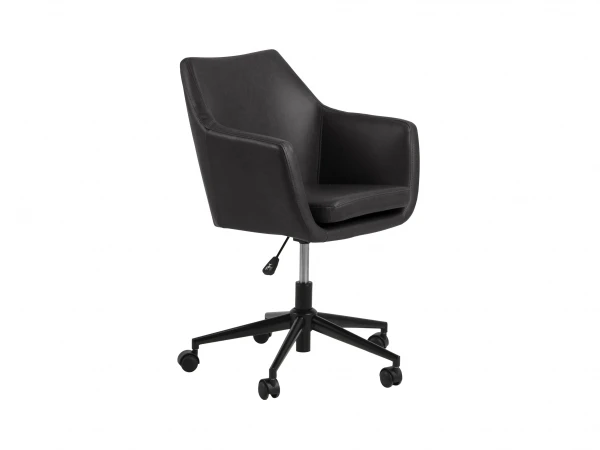 Deze uitvoering van bureaustoel Nora is een stijlvolle bekleding in bruine of zwarte lederlook, met zwart metalen onderstel. Ideaal voor aan de computertafel of aan je bureau. Zijn hoge rugleuning en zachte zitkussen maken hem extra comfortabel. Deze moderne bureaustoel met tijdloze looks past in elk interieur!