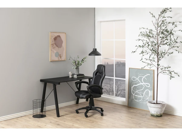 Met deze bureaustoel haal je een topper in huis aan een zeer zachte prijs! Deze bureaustoel op wielen is draaibaar en verstelbaar in hoogte. De rugleuning komt extra hoog, voor een ergonomische houding en volledige ondersteuning van rug en hoofd. De zwarte kleur past gemakkelijk in elk interieur.