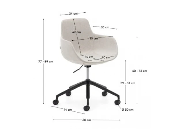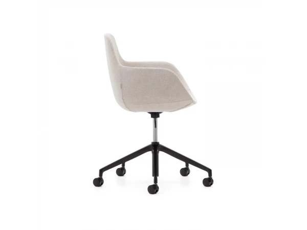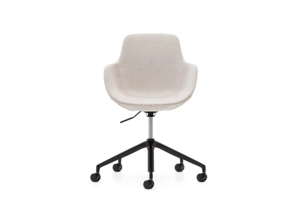Zou je niet spontaan zin krijgen om aan je bureau te schuiven met bureaustoel Tissiana van Kave Home? Deze bureaustoel is draaibaar en in hoogte verstelbaar, zo kun je de perfecte zithouding creëren en je makkelijk verplaatsen aan je bureau. De zitting met gebogen lijnen en armleuningen maken het tot een prachtig ontwerp. De beige kleur mengt zich goed met andere kleuren in je interieur, maar je kan ook altijd kiezen voor een ander kleurtje!