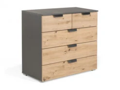 Budgetvriendelijk, stijlvol en ultiem gebruiksgemak, daar gaan we voor met de slaapkamermeubelen van Rauch. De houtkleurige commode Aditio heeft een strakke moderne look en komt met 5 laden. De zij- en bovenkant zijn in donkergrijs, wat een mooi contrast geeft. Het past perfect bij de andere artikelen uit de Aditio reeks. De Aditio collectie is beschikbaar in meerdere kleuren, kom langs en ontdek de mogelijkheden!