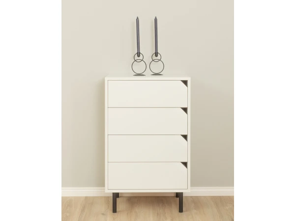 Deze prachtige commode is onderdeel van de Corner-serie van Tenzo. De serie is ontworpen door Jurij Rahimkulov en is uniek is zijn ontwerp met verfijnde handgrepen in de vorm van afgeschuinde en geslepen hoeken. Dankzij de vier laden beschik je zeker over voldoende opbergruimte. Corner is een prachtige combinatie van Scandinavisch design met een moderne toets. Waar plaats jij deze eyecatcher?