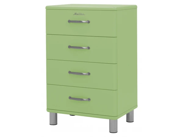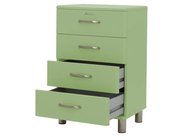 Op zoek naar een retro kast? Dan vind je in de Malibu collectie vast wat je zoekt! Deze kast kan je makkelijk in elke ruimte integreren: kinderkamer, bureau, living of keuken, het kan allemaal. Dankzij de 4 laden beschik je zeker over voldoende opbergruimte.