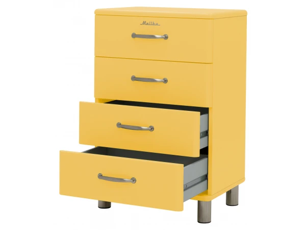 Op zoek naar een retro kast? Dan vind je in de Malibu collectie vast wat je zoekt! Deze kast kan je makkelijk in elke ruimte integreren: kinderkamer, bureau, living of keuken, het kan allemaal. Dankzij de 4 laden beschik je zeker over voldoende opbergruimte.
