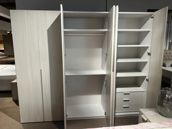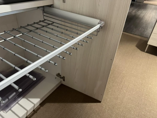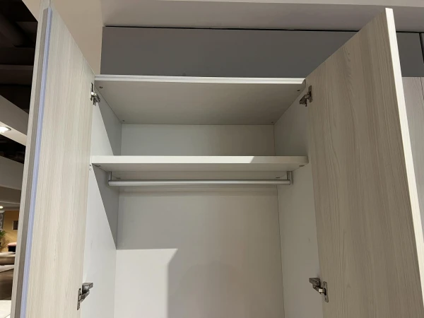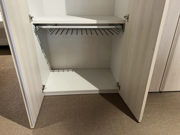 Met deze draaideurkast haal je zeker weten een praktisch en doordacht opbergmeubel in huis. Zo is de kast voorzien van een ladeblok, voldoende legplanken en roedes. Ook is er een uitschuifbare broekhanger aanwezig! Je kledingkast heeft er nog nooit zo georganiseerd uitgezien. Haast je want dit is een toonzaalmodel. Dat betekent: op = op!
