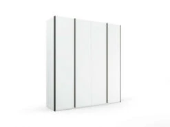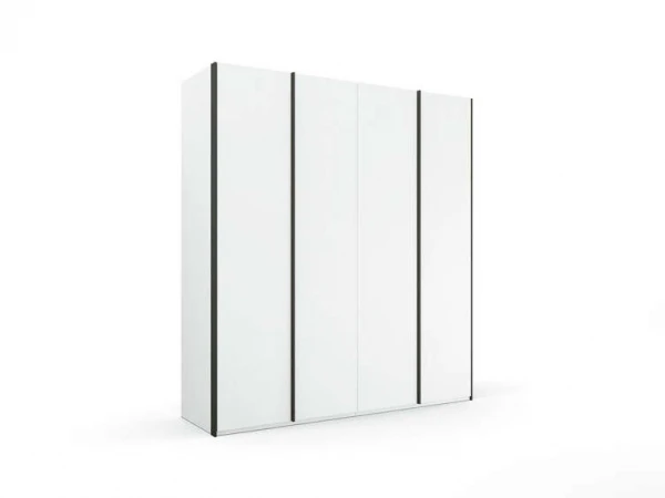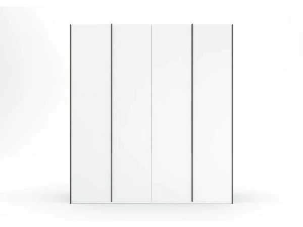Draaideurkast Skat is de eyecatcher van de slaapkamer! Deze collectie bestaat uit draaideurenkasten met en zonder accessoires. De kasten bestaan uit 4 breedtes en 2 hoogtes en zijn in 6 verschillende fronten beschikbaar. Kom langs in de toonzaal en ontdek de verschillende mogelijkheden of kies voor deze draaideurkast met front Meridian. De kast beschikt over 4 deuren met een doorlopende greeplijst in de kleur Alpine White. In elke kast zitten er standaard 2 legplanken en 1 kledingstang.