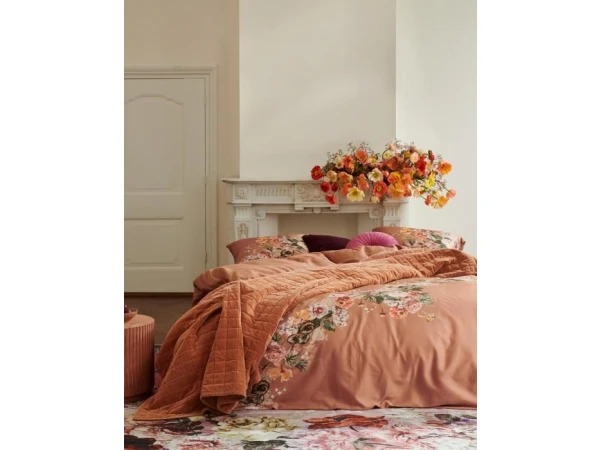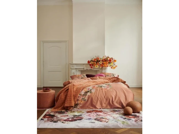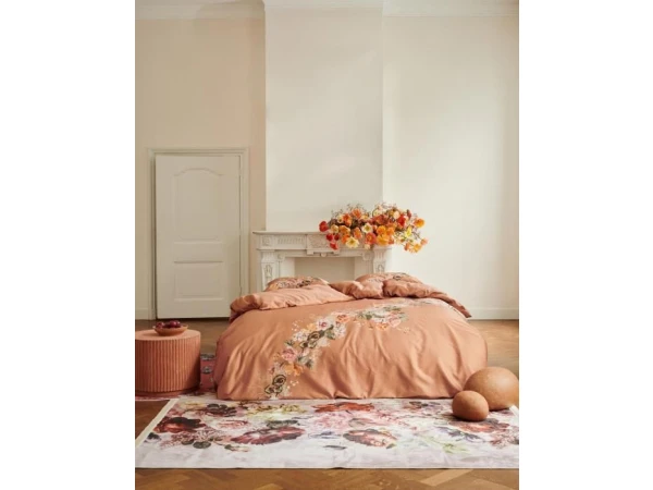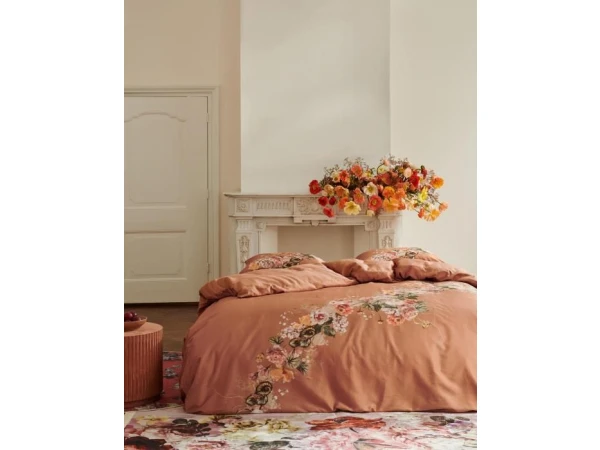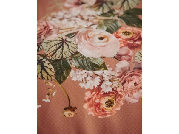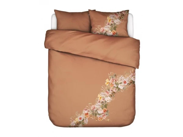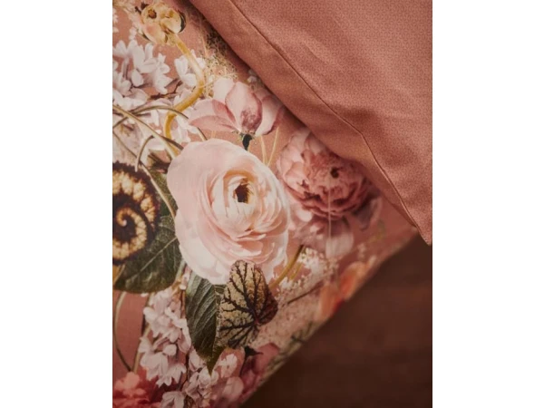 Speelsheid speelt de hoofdrol bij ons Masha mocca dekbedovertrek. De bloemenslinger met verschillende soorten volumineuze rozen en lieflijke witte koekoeksbloemetjes loopt schuin over het moccakleurige overtrek met licht grafisch printje en maakt van al je dromen een feestje. De andere zijde bevat enkel de moccakleur met licht grafische print, waardoor de bloemenslinger haar welverdiende aandacht behoudt. Het zachte katoen satijn zorgt voor een lichte glans en heeft een heerlijk ademende kwaliteit.