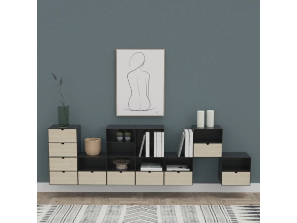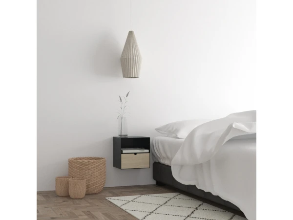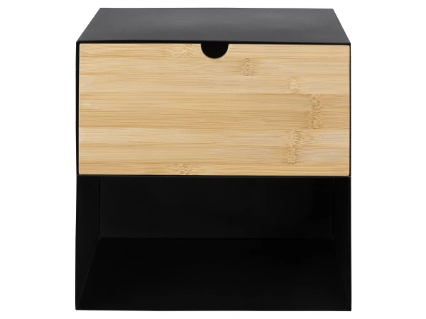 Joliet is een zwevend kastje dat je aan de muur bevestigt. Daarom is Joliet niet enkel geschikt als nachtkastje. Eigenlijk kun je het overal omhoog hangen, zelfs met meerdere onder of naast elkaar. Met Joliet maak je een prachtige combinatie wandkastjes aan de muur. Overal kan het van dienst zijn! De lade kun je zowel in het bovenste als onderste vak plaatsen, zodat er ook steeds een open vak vrij blijft. Beschikbaar met lade in zwart of bamboe.