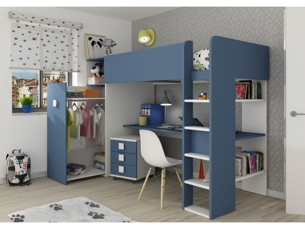 Hoogslaper Jules is een echte must have als je een jeugdkamer slim wil inrichten! Dit bed komt inclusief bijhorend bureaublad en een bijpassende trap. Zo creëer je onder de hoogslaper een handige studieruimte! Deze uitvoering beschikt ook over een erg handige opbergkast met hangroede waarin je kledij en andere zaken een plekje kan geven! Nog slimmer omgaan met je ruimte, dus. Hoogslaper Jules, van Richter Young Design, is bovendien beschikbaar in meerdere kleuren!