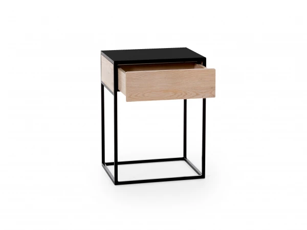 Dit nachtkastje heeft een strak en elegant design. Met zijn afwerking in zwart metaal volgt hij de laatste interieurtrends. Dit contrasteert mooi met de lade in natuurlijk hout. Zo heeft dit nachtkastje toch nog de opbergruimte die je nodig hebt.