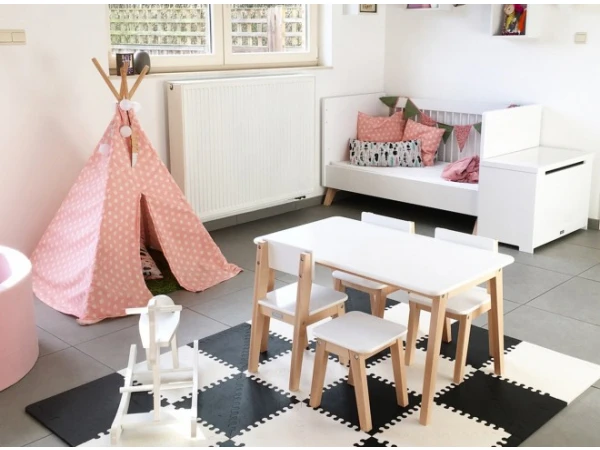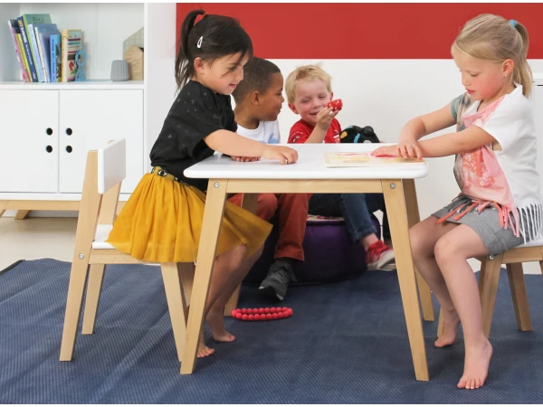 Dit kindertafeltje maakt deel uit van de collectie Ivar van Bopita. Het tafeltje heeft een wit tafelblad en houten onderstel en past daardoor in ieders interieur. Combineer met het bijhorende kinderstoeltje- en krukje om een leuke zithoek te creëren, waar je kind urenlang zal kunnen spelen! Van dit tafeltje is er ook een vierkant model beschikbaar.