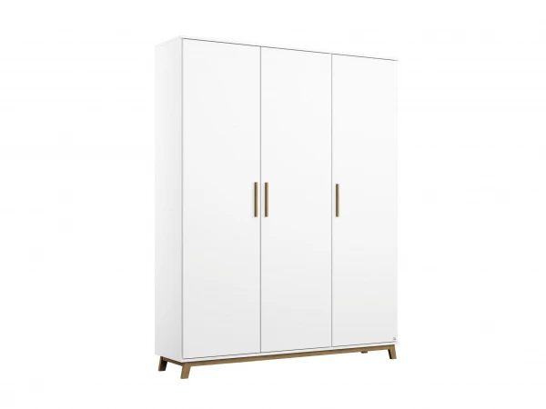 Deze kleerkast heeft 3 draaideuren met vanbinnen een hangroede en diverse legplanken. De houten poten zorgen voor een elegante uitstraling. Met de bijhorende slaapkamer meubelen vorm je jouw slaapkamer om tot een pareltje!