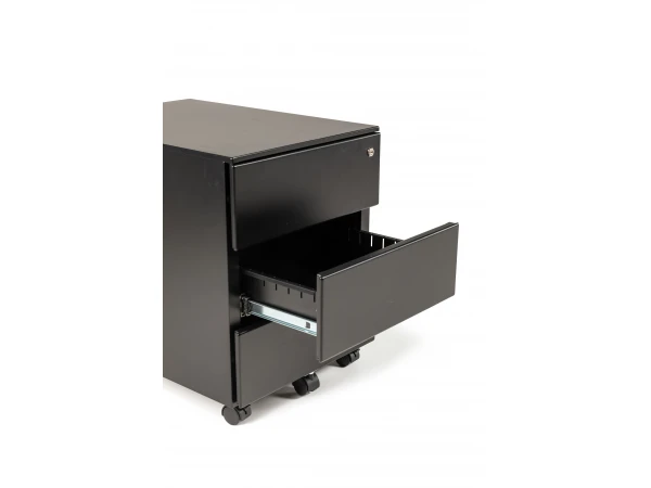 Dit rolkastje of ladeblok op wielen is beschikbaar in diverse kleuren, waaronder wit, lichtgrijs, antraciet en zwart aluminium. Met 3 laden beschik je over veel opbergruimte. Bij de eerste lade komt een slot met 2 sleutels, ideaal voor het bewaren van belangrijke documenten of materiaal. Deze ladeblok is uiterst geschikt voor zowel thuis als in een professionele omgeving. Plaats het onder je bureau om niet teveel ruimte in beslag te nemen.