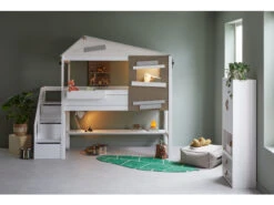 Durf jij wat hoger te slapen? Dit halfhoge hutbed brengt je avonturen naar het ultieme niveau! De trappenkast geeft je een veilige weg naar je bed én biedt veel opbergruimte. De legplank onder het bed kun je gebruiken als tafeltje. Handig voor speelgoed, spulletjes of schoolgerief. Gaan slapen was nog nooit zo leuk!