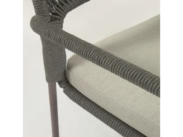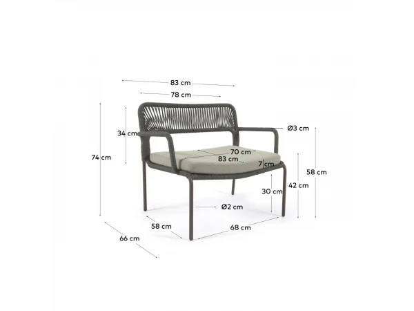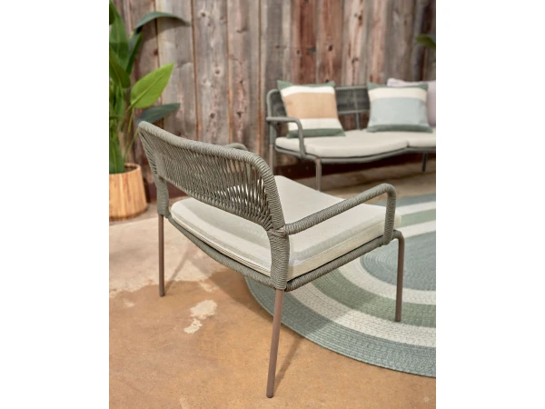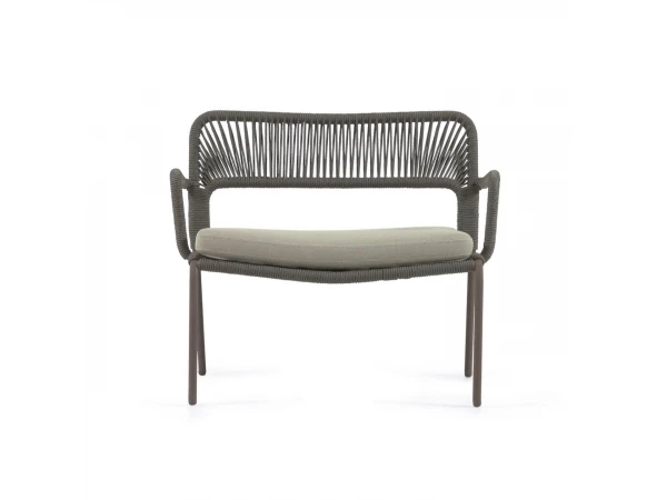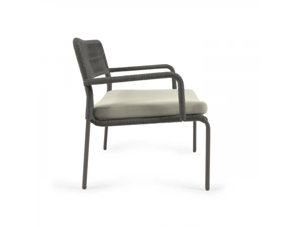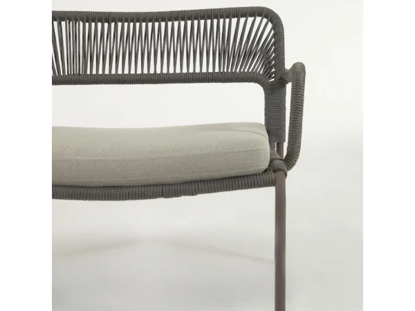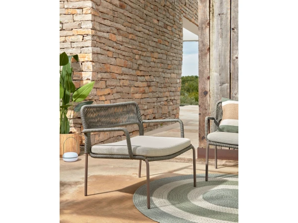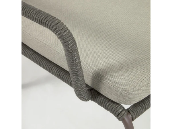 Loungestoel Cailin van Kave Home is een ware blikvanger voor je terras. De rugleuning en zitting hebben een uniek design van beige koord, dat meteen alle aandacht trekt. Deze fauteuil is te verkrijgen in 2 kleuren. Een zachte beige kleur die mooi samengaat met de stoelpoten in wit gelakt staal, of een stoer donkergroen. Deze loungestoel vormt met de bijpassende 2-zit een moderne loungeset die je terras een fris uitzicht geeft. Combineer met de andere tuinmeubelen uit de Cailin-reeks voor een samenhangend geheel.