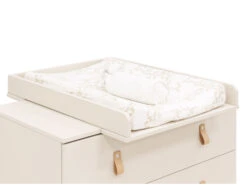 De luiertafel Safi van Bopita is perfect compatibel met de commode van de Lines serie. Deze slimme barrier zorgt ervoor dat je baby recht voor je ligt, wat het verschonen en aankleden vergemakkelijkt. Met opstaande randen voor extra stabiliteit en veiligheid blijft het aankleedkussen op zijn plek. Eenvoudig te bevestigen en geschikt voor kinderen tot 15 kg, biedt de Safi luiertafel zowel gemak als comfort in één. De barrier steekt aan de voor- en achterkant van de commode iets uit, waardoor het meubel ongeveer 10-15 cm van de wand komt af te staan. De maximale afmetingen van het aankleedkussen zijn 52 x 72 cm.