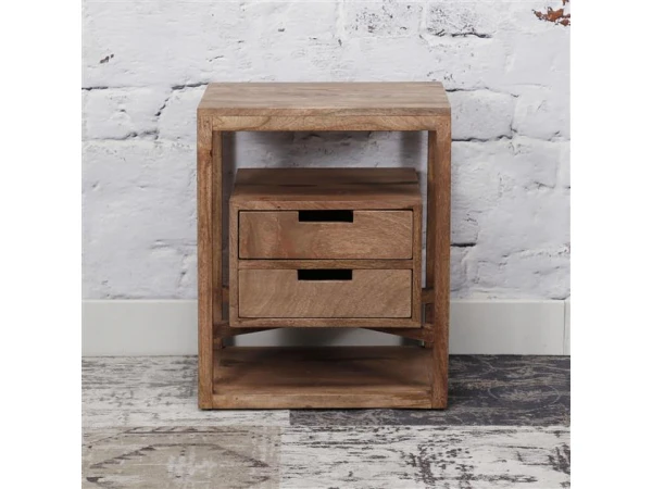 Dit nachtkastje Sahara is uitgevoerd in massief mango hout met een lichte zandkleur. Het nachtkastje heeft twee schuiflades, steunend op planken in het midden van het kastje waardoor de lades een zwevend effect krijgen. Dit kastje kan natuurlijk ook perfect dienst doen als bijzettafeltje! Deze nachtkast maakt deel uit van de Sahara reeks van Richter Young Design, bestaande uit twee nachtkastjes, een haltafel, een dressoir en een tv-meubel. Ontdek alles in onze online shop of in onze showroom!