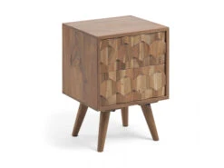 Prachtig, dit houten nachtkastje uit massief acaciahout! De geometrische vormen gegraveerd in het acaciahout geven het nachtkastje een uniek design. De natuurlijke uitstraling van dit nachttafeltje brengt ongetwijfeld rust in je slaapkamer.