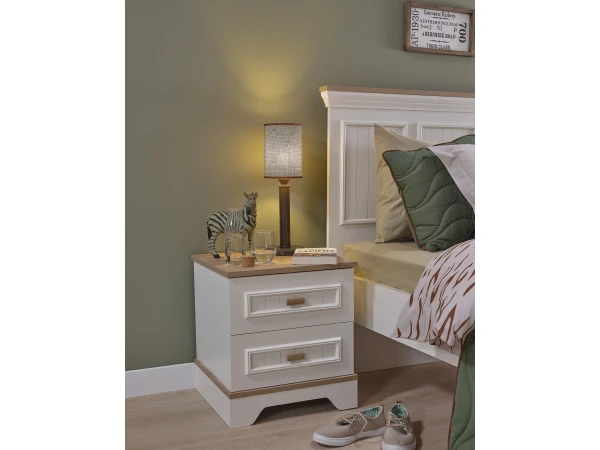 Nachtkastje Monte maakt deel uit van de volledige tienerkamer Monte, die perfect past binnen de landelijke woonstijl. Alle meubels van deze collectie zijn gemaakt van wit gelakt MDF met details in naturel hout. De Monte collectie bestaat uit een breed gamma meubelen om je ideale kinderkamer samen te stellen. Ontdek deze landelijke slaapkamer nu in onze toonzaal!