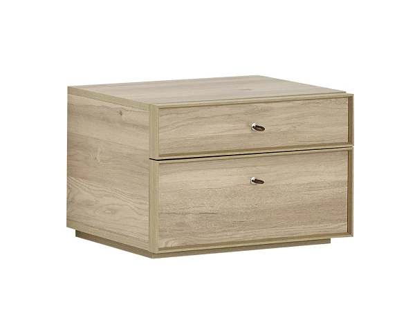 Dit nachtkastje past in een modern, landelijk, en Scandinavisch interieur. Zijn houten melamine-afwerking in bleke eik geeft het nachtkastje een eigentijdse uitstraling.