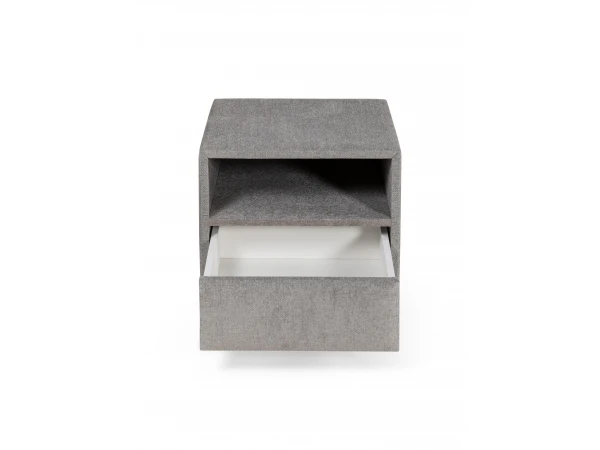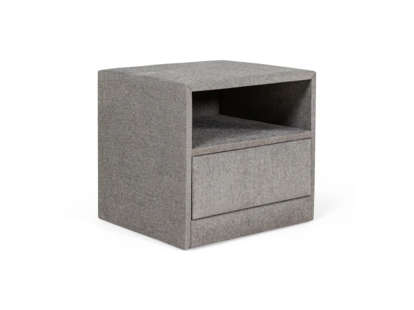 De nachttafel Cube is een modern en trendy nachtkastje dat bovendien erg praktisch is. Deze nachtkast is uitgevoerd in een zachte grijze stof, en beschikt over een schuiflade en een open vak. Zo krijg je een rustgevend element dat je slaapkamer vervolledigt, met handige opbergfuncties. Perfect bijpassend bij een boxspring of als accent bij een bed. Voor meer info kan je terecht bij de verkopers in onze toonzaal!