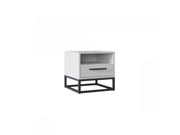 Deze nachtkast vervolledigt de slaapkamer Legend, en afhankelijk van de positie van het bed kan je kiezen voor één of twee stuks. Het elegante design sluit aan bij de volledige jeugdkamer, en maakt gebruik van een antraciet minimalistisch frame gecombineerd met een wit kastje. Bij deze nachttafel heb je meteen een schuiflade en een opbergvakje erbij!