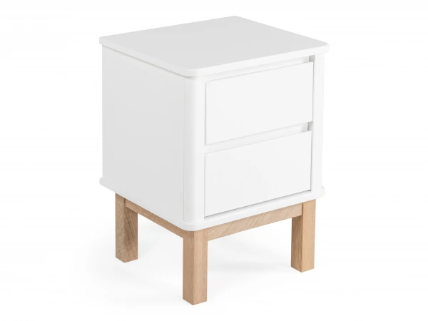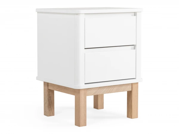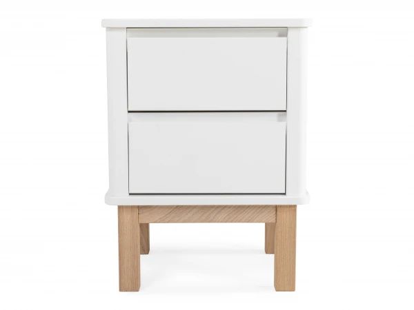 Nachtkastje Mika beschikt over twee greeploze lades en past perfect bij het bed Mika van dezelfde serie. Dus combineer het nachtkastje met de andere meubels van de serie Mika en creëer zo een mooi geheel!