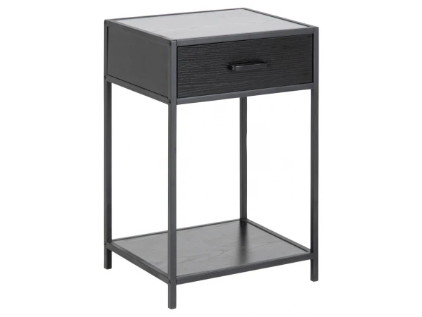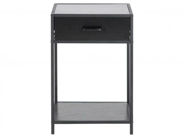 Zwart nachtkastje Seaford van Actona is een zeer stoer, compact meubel in industriële stijl. Deze nachttafel beschikt over een schuiflade en een fijn frame in metaal. Kan je makkelijk en elegant per twee of op zichzelf naast je bed plaatsen!