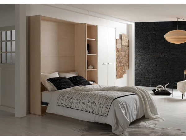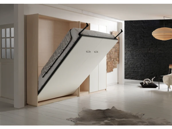 Met dit verticaal opklapbed uit de collectie Base van Boone bespaar je heel wat ruimte! Het bed zit veilig opgeborgen en lijkt aan de buitenkant een simpele kast te zijn. Zonder echt kracht te moeten zetten kun je het bed stapsgewijs naar beneden trekken met de handvaten. Ook het inklappen gaat zeer eenvoudig dankzij de gasveren.